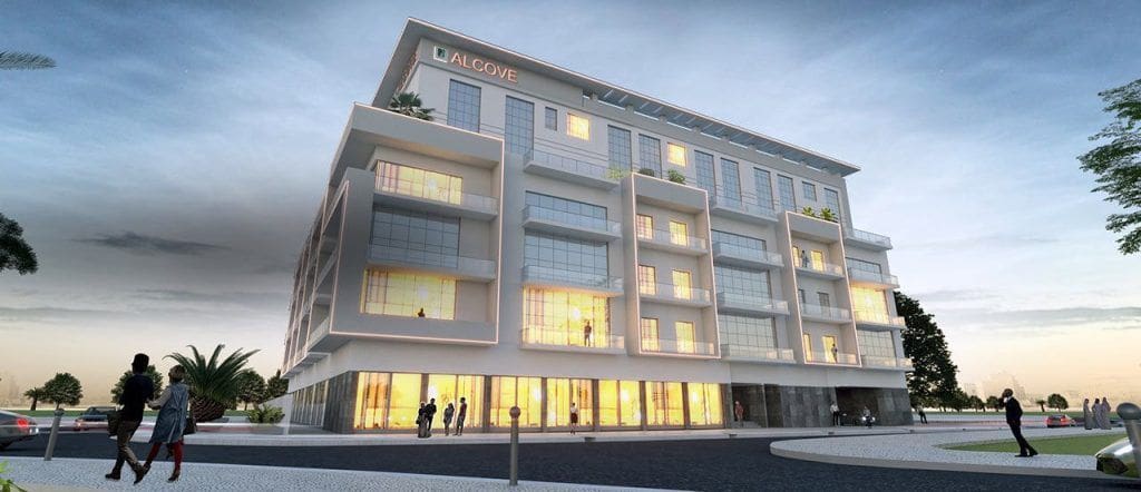 The Alcove is a six-storey residential complex located in Jumeirah Village Circle, Dubai. The building consists of 78 residential units including studios and one- to two-bedroom apartments, as well as retail stores on the first floor. Commissioned in 2018, the project was developed by Grovy Real Estate Development, and the architectural design was implemented by Next Engineering Consultants.