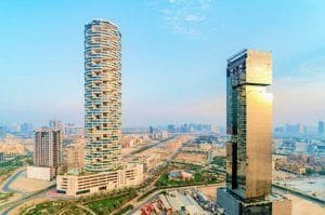The One is a 40-storey residential complex located in District 14, a sub-community of Jumeirah Village Circle. Commissioned in November 2021, the project was developed by the First Group, and the architectural design was implemented by Norr Group Consultants International Ltd. The main construction work was carried out by China Railway 18th Bureau Group. The development won two awards, one of which was ‘Hotel of the Future’ for its unique design. There are a total of 496 residential units, including studios and one- to two-bedroom apartments. Properties are managed by Wyndham Hotel Group, an international hotel operator.