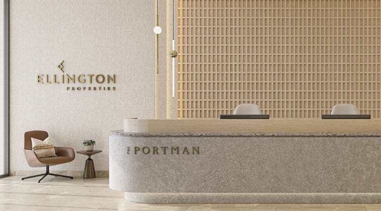 Nestled in the vibrant area of Jumeirah Village Circle (JVC), The Portman is an elegant 16-storey residential tower by Ellington Properties. The project was launched in Q2 2022 and there are a total of 173 units available for sale, namely sophisticated studios and 1-2 bedroom apartments. The envisioned building will boast a contrasting palette of white and timber, along with grand lobby windows and an entrance with dark travertine finishes.
