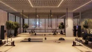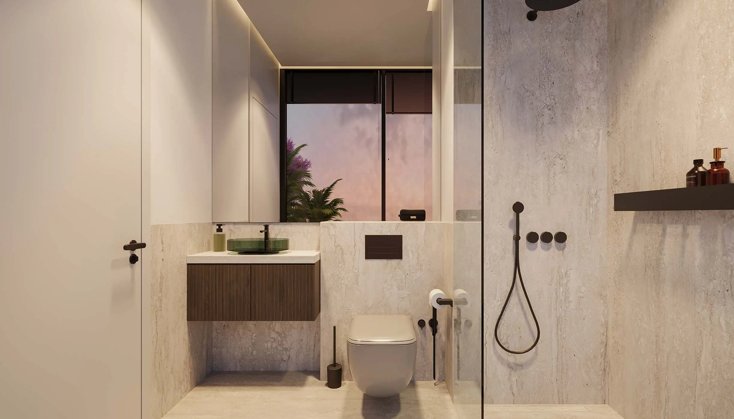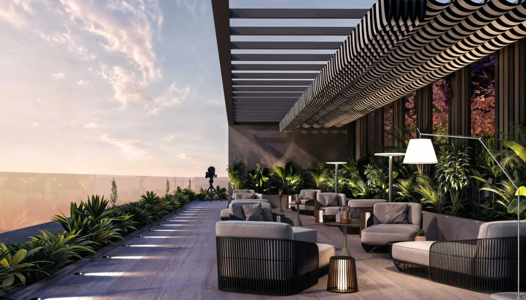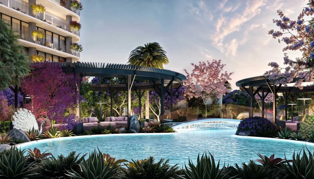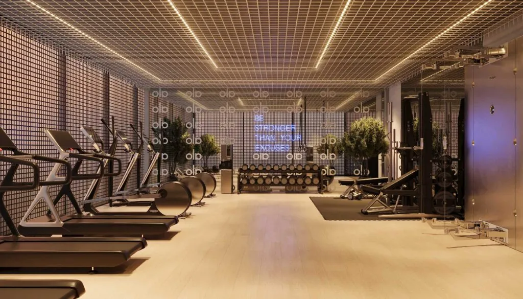 Residents enjoy a rooftop slow river, infinity pools, tennis and padel courts, a rooftop observatory and cinema, wellness spa, gym, concierge services, private transport, and more.