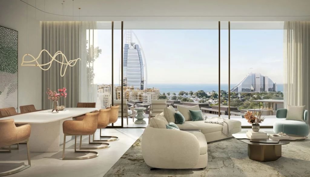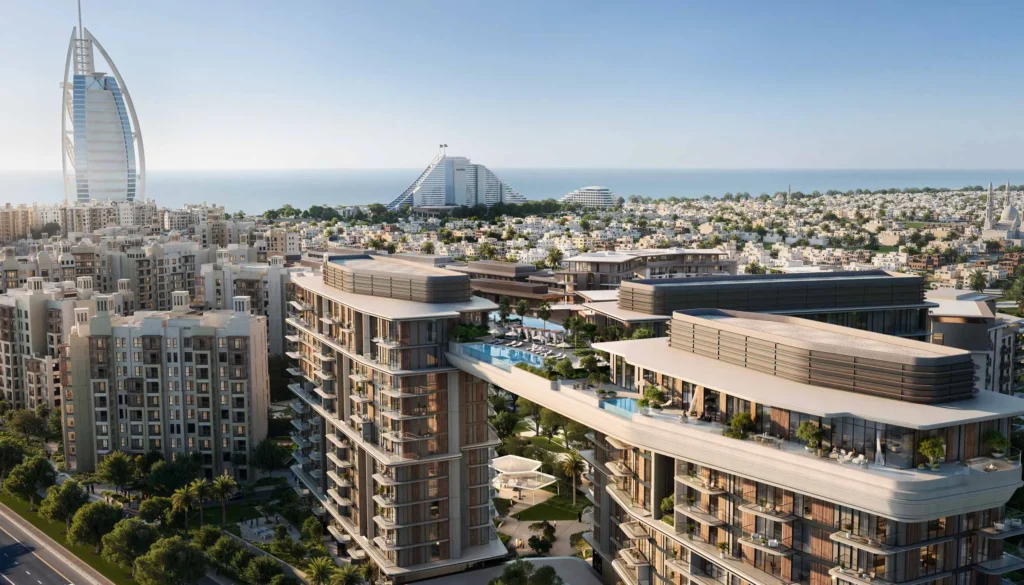MJL – Nourelle is located in Jumeirah, directly opposite the world-famous Burj Al Arab in Dubai, offering residents a prime location within one of the city’s most exclusive neighborhoods.