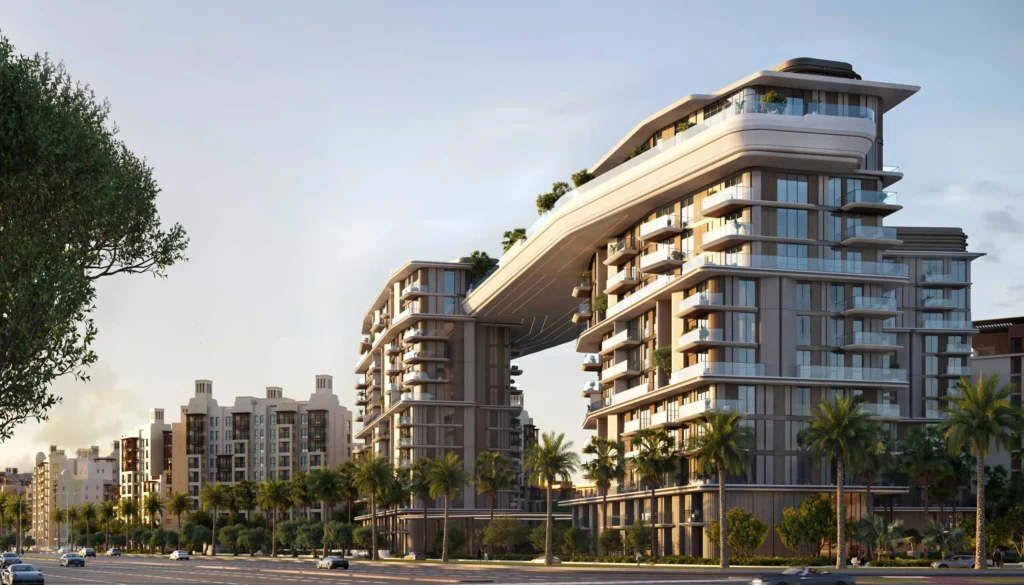 MJL – Nourelle is the latest phase of the prestigious Madinat Jumeirah Living community by Meraas. This freehold development is located immediately opposite the world-famous Burj Al Arab in the luxurious Jumeirah district. The project proposes a premium collection of 1 to 4BR apartments, comprising a total of 66 units across three interconnected buildings linked by a skybridge with sky gardens and infinity pools. Average prices start from AED 3.68M for 1-bedroom units and go up to AED 19.37M for 4-bedroom residences.