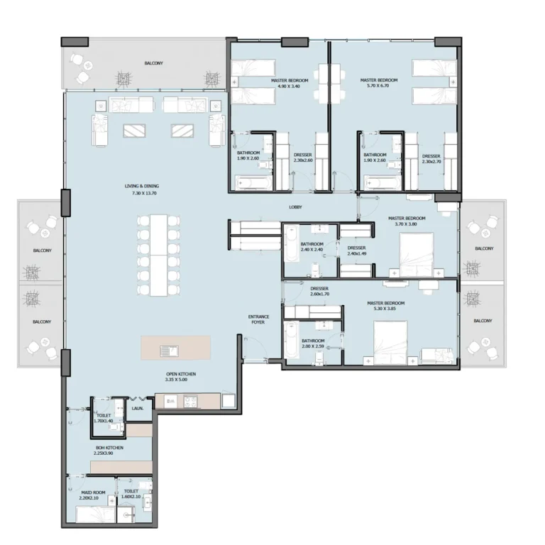 Oceana offers a mix of studios, 1BR (junior & simplex), 2-3BR apartments, and penthouses.