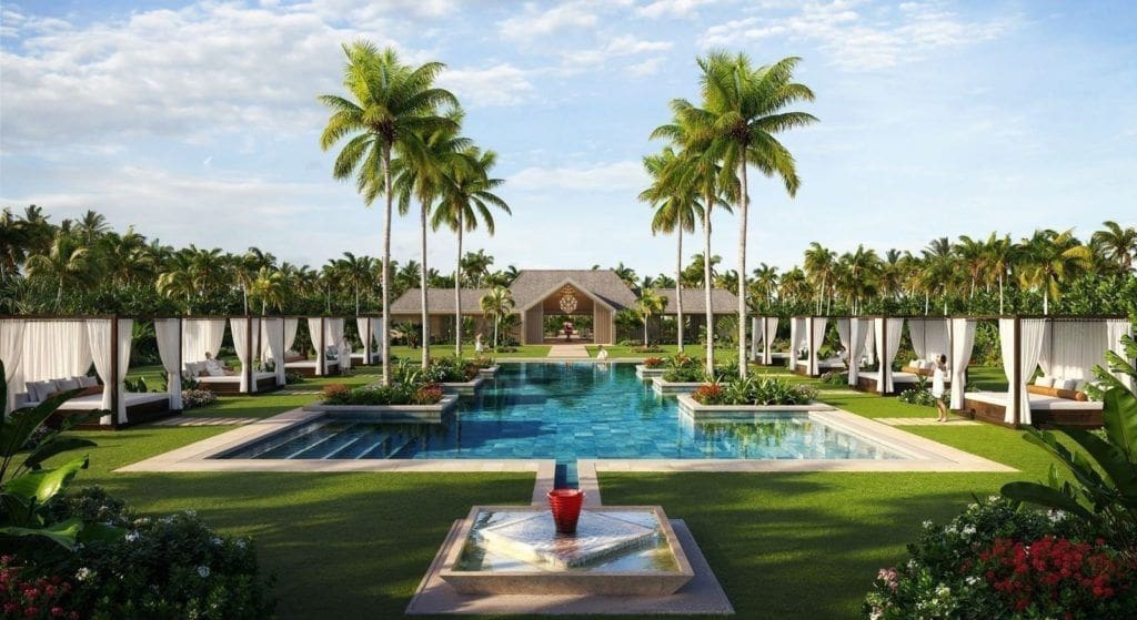 The exclusive project features fully furnished 2-4 bedroom beach villas, 2-3 bedroom lagoon villas, as well as branded 7-bedroom mansions in several styles: Signature, 1764 and Baccarat. These designer homes start at 3,165 sq. ft in size.