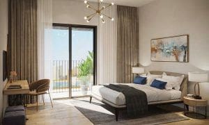 Shams Residences is a modern seven-storey residential complex located on the coastal strip of Maryam Island in Sharjah. The project is being developed by Eagle Hills and is tentatively scheduled for completion in the second quarter of 2023. The complex will consist of 59 residential units, including studios, one- to three-bedroom apartments, and four-bedroom penthouses. Properties range in size from 32 sq. m (348 sq. ft) to 150 sq. m (1,622 sq. ft), and the price per square metre starts at AED 1,333 (USD 360). The minimum price for a furnished studio is AED 463,000 (USD 125,000).