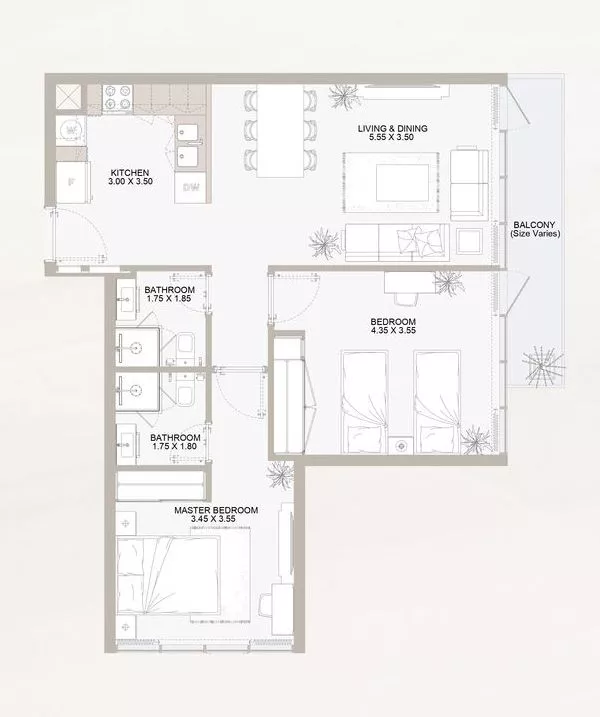 The total number of units in Plaza constitutes 348, with the development offering elegant studios, 1–2 bedroom apartments and 4-bedroom townhouses. All properties are equipped with double glazed windows and built-in wardrobes in bedrooms, and residents can enjoy the community views from their very own private balcony or terrace.