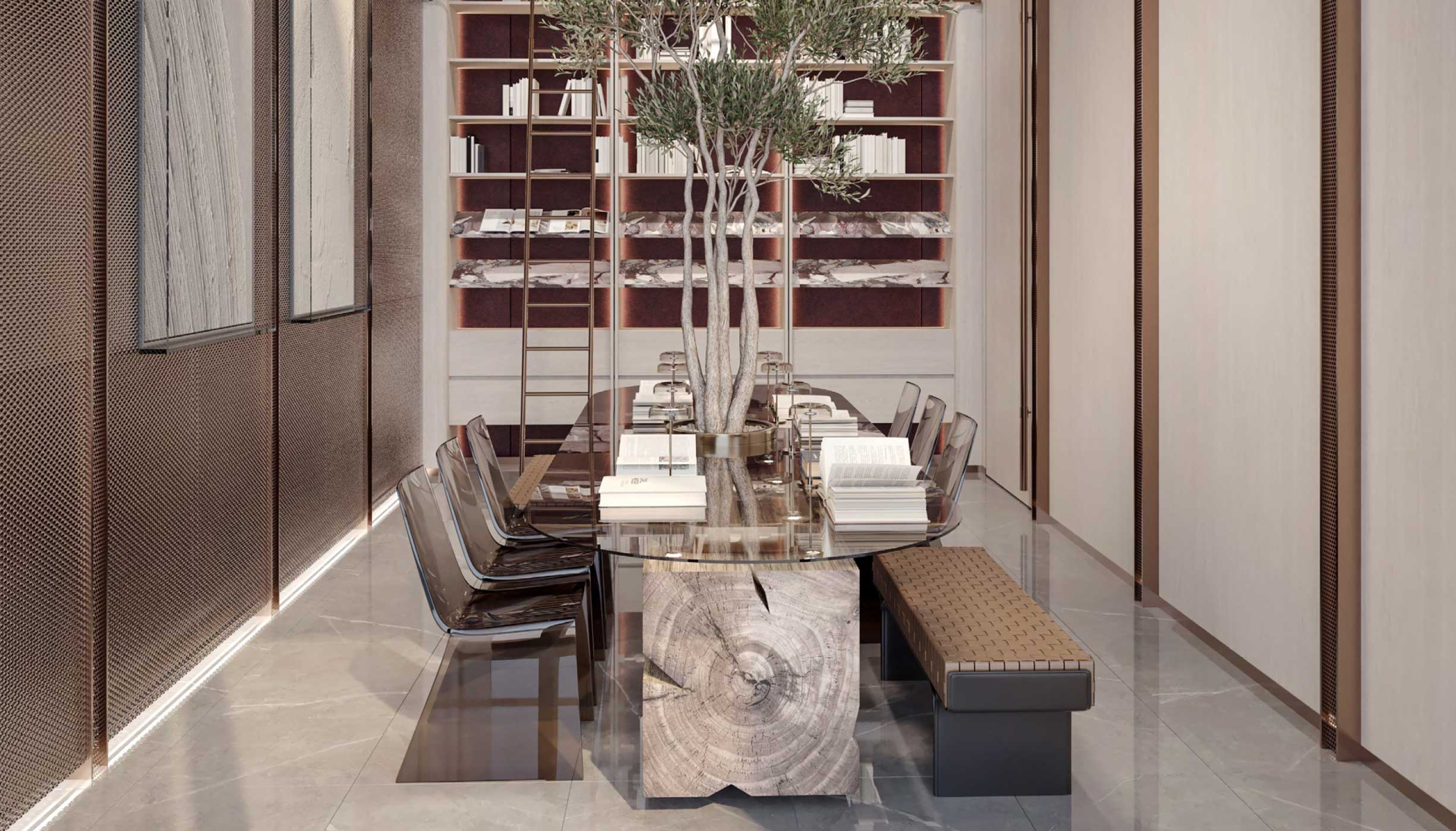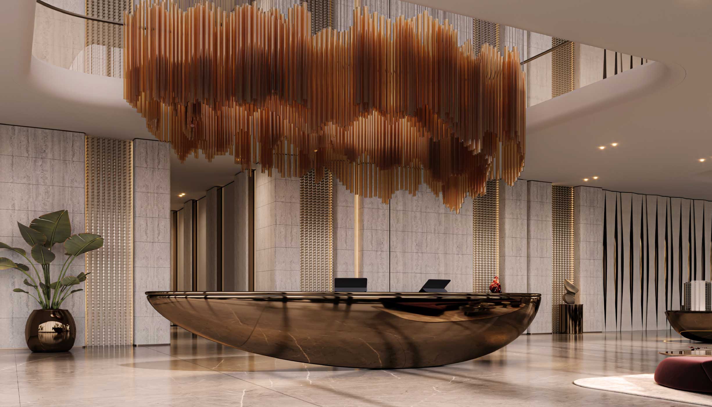 Experience an iconic first impression with a grand lobby and interior geometry inspired by Zaha Hadid.