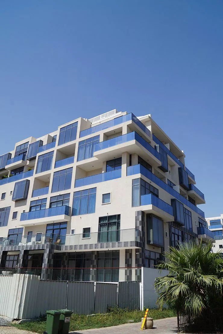 The complex has a total of 269 residential units, and properties include one- to four-bedroom apartments that range in size from 83 sq. m (900 sq. ft) to 343 sq. m (3,696 sq. ft). Four-bedroom units come in two different layouts, some with two levels, and have six bathrooms. All apartments include spacious terraces and interior design inspired by Greek culture. Most units also have staff accommodations.