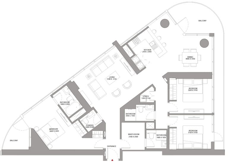 Sobha Solis will offer a range of 1-3 bedroom apartments, including 1.5-bedroom units, with property sizes ranging from 536 sq. ft to 1,889 sq. ft.
