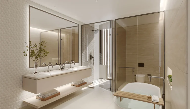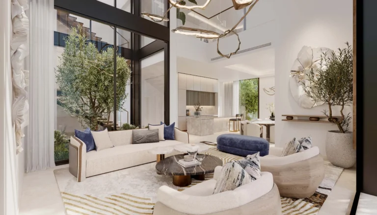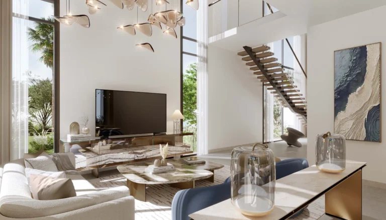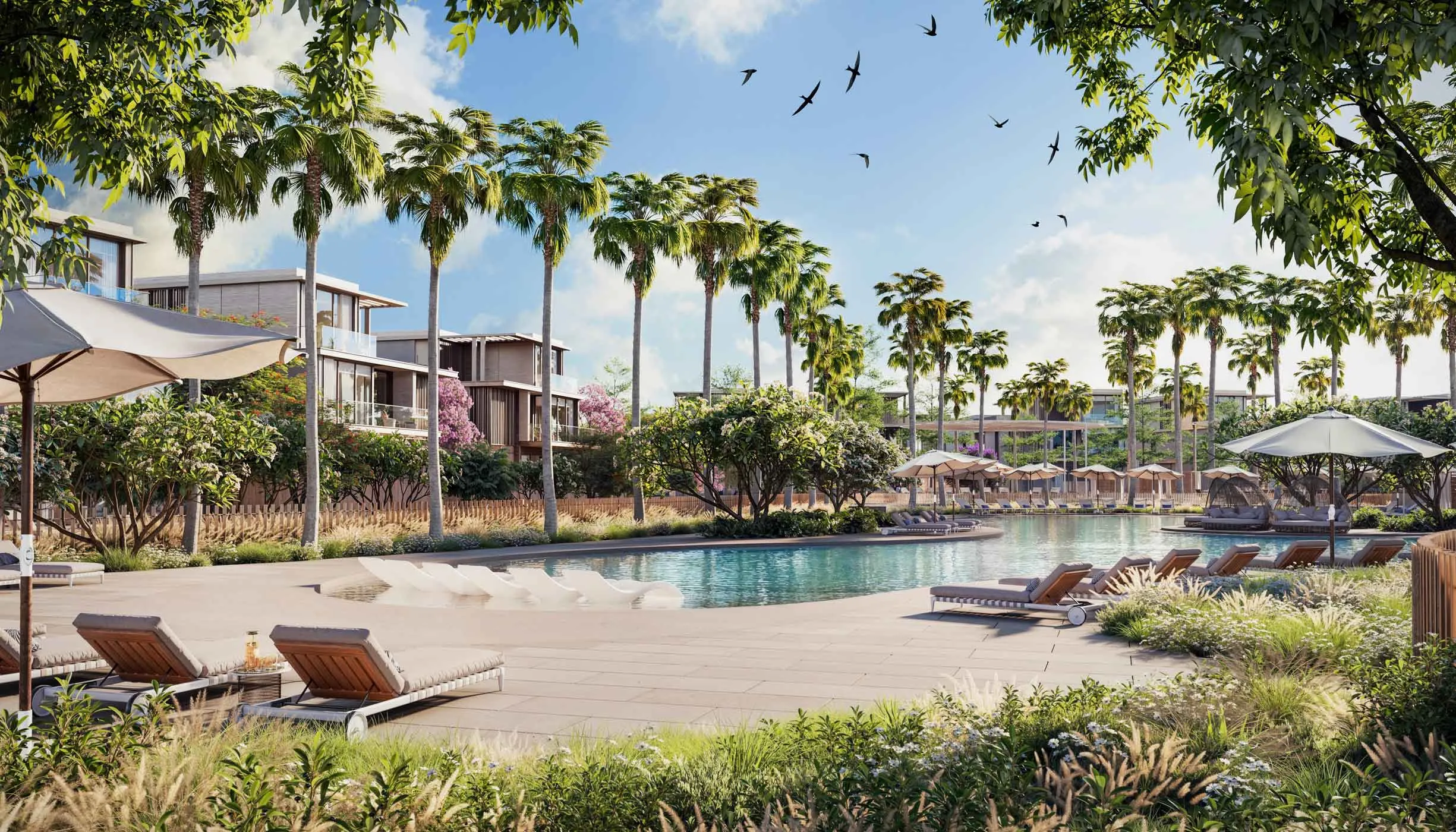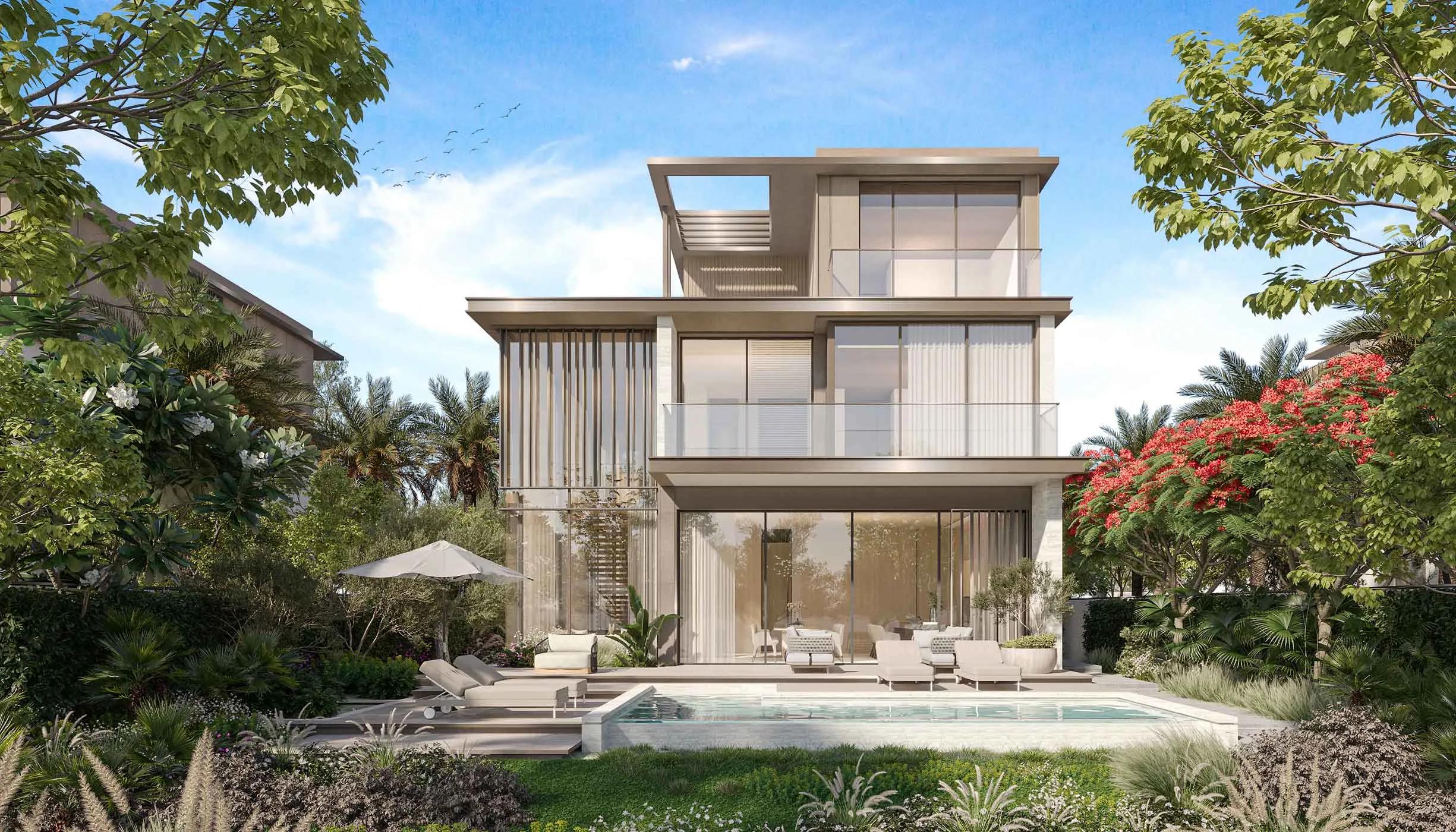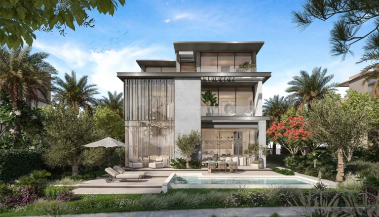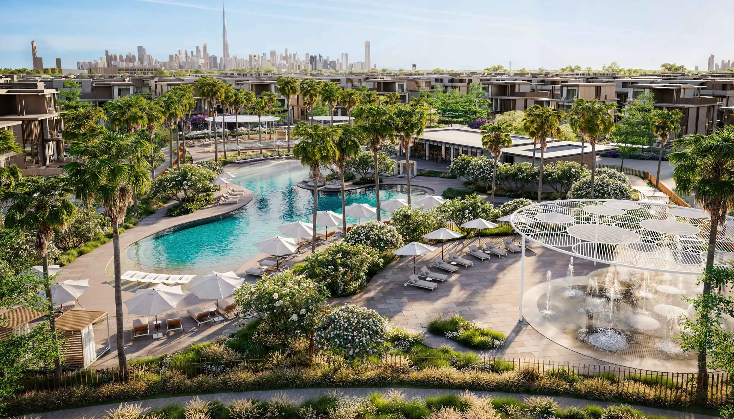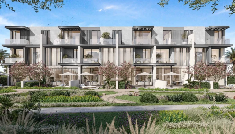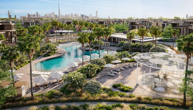 Nestled within a green master plan, the area offers a clubhouse, tennis and padel courts, a school, retail establishments, lagoon and wave pools, plus landscaped boulevards. Handover is planned for June 2029, and prices start at AED 6.15M.