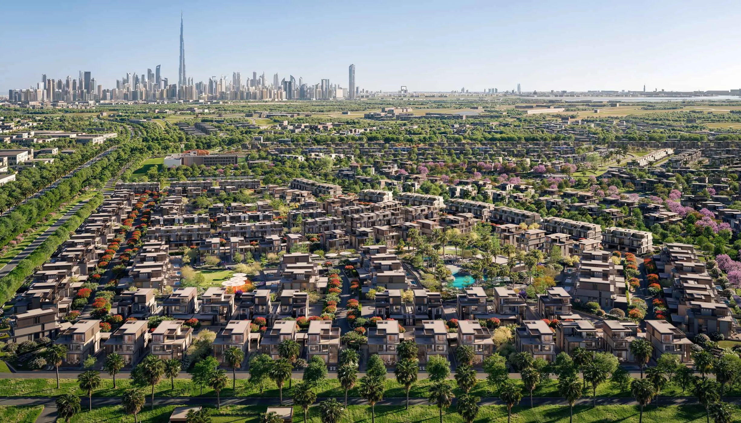 Meraas's newest development in Meydan's coveted low-density master community, Nad Al Sheba Gardens Phase 11, is only 10 min from Downtown Dubai. It features spacious 3-bedroom townhouses and 4–5-bedroom villas with double-height living areas, private gardens, contemporary facades, and seamless indoor-outdoor layouts. Select 4-bedroom villas include a private lift.