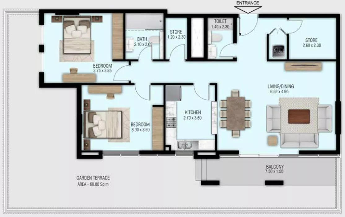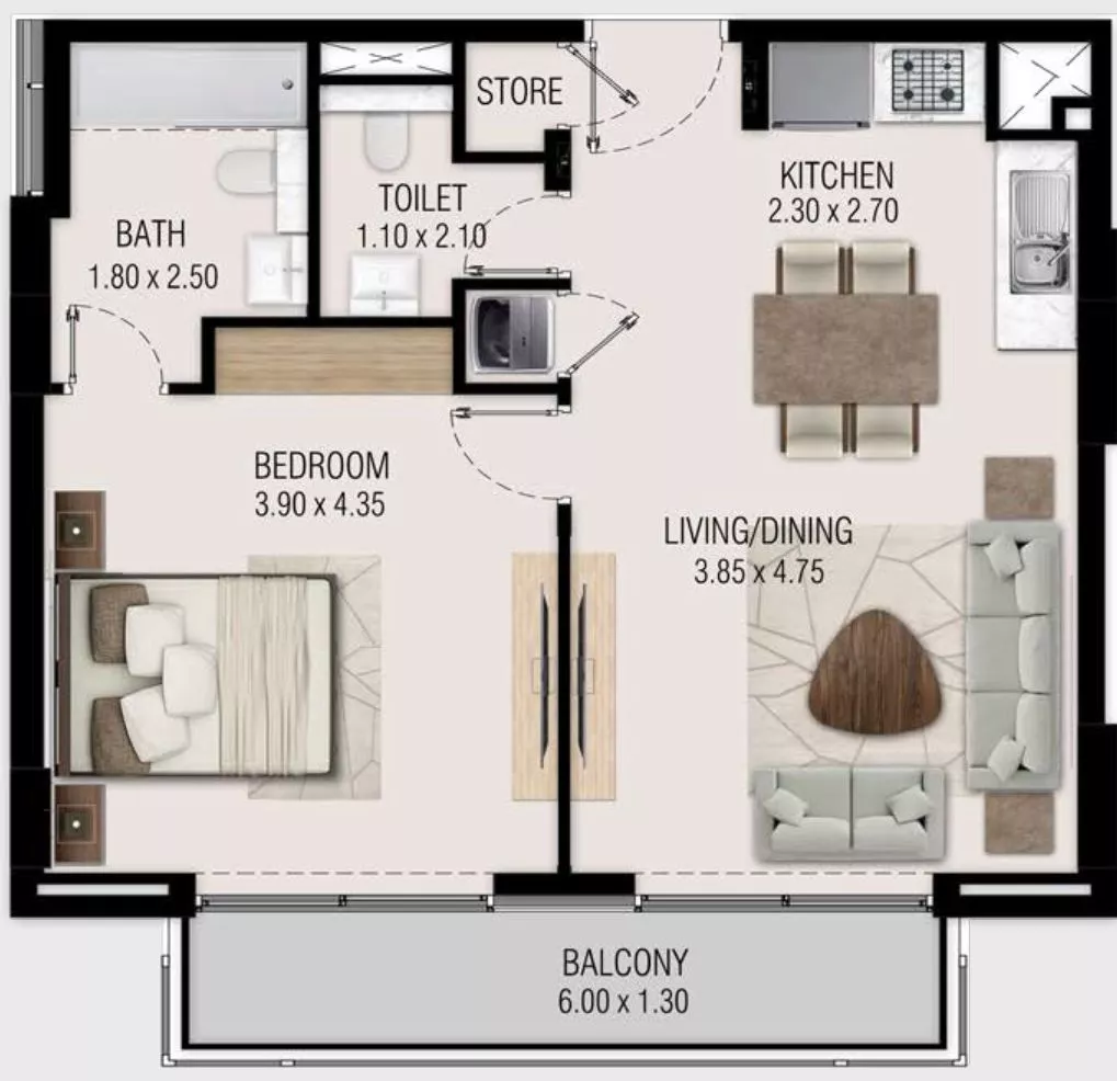In terms of layouts, the studios and apartments will be distinguished by built-in wardrobes, private balconies and plenty of storage space. Villa owners will have a maid’s room, bigger living rooms and a backyard patio with a garden at their full disposal.