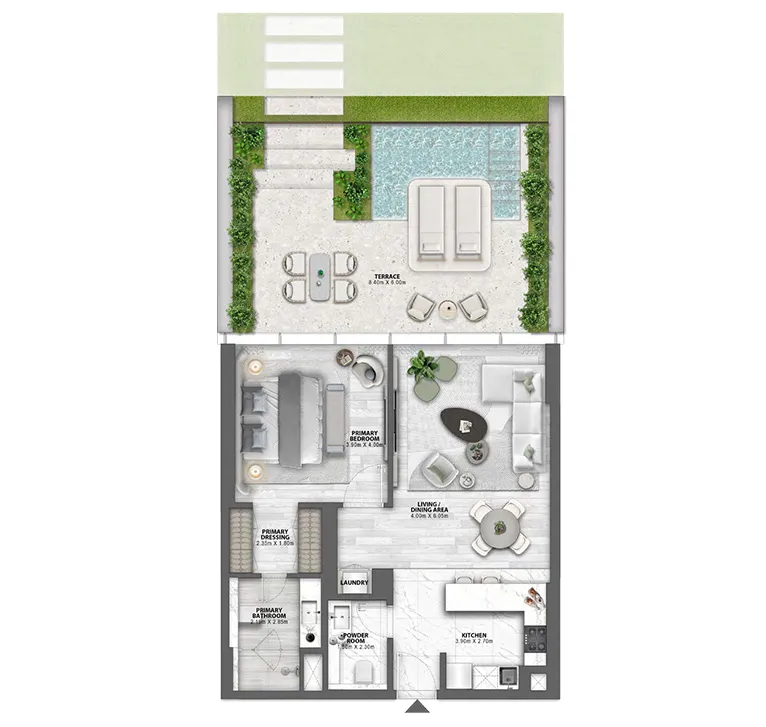 Residents are granted exclusive access to 250 metres of private beach, complemented by cascading aquascape pools, beachfront cabanas, and distinct family and kids’ swimming zones—creating a true resort-grade coastal lifestyle.