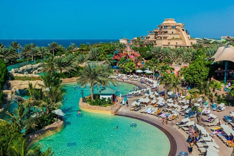Directly on the island of Palm Jumeirah is the world’s largest water park, Aquaventure Waterpark, with a variety of slides and other attractions. There are also two shopping complexes in the area: The Pointe and Nakheel Mall. There are restaurants, food courts, beauty salons, a pharmacy, a playground for children, a hypermarket and other stores here.