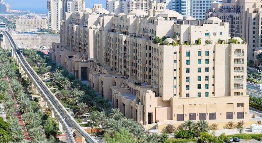 Golden Mile is a complex of residential and commercial real estate consisting of 11 towers. It is located on the waterfront Palm Jumeirah, an artificial island in the form of a palm tree.