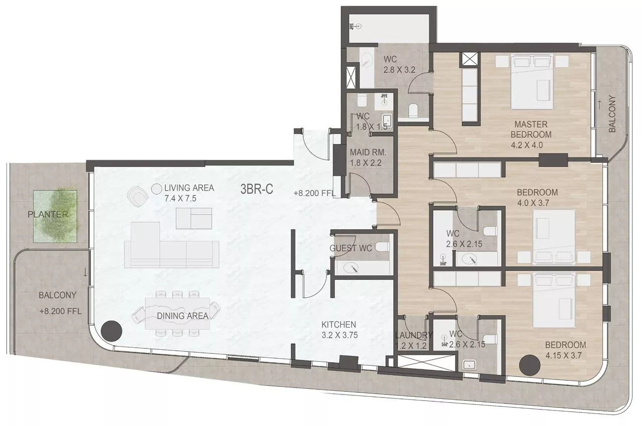 Prospective property buyers can choose from 36 two–four bedroom apartments. In addition, there is a super-luxe penthouse and an exclusive duplex available for acquisition.
