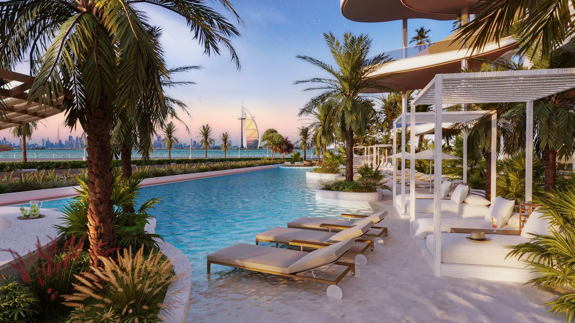 You have the unique opportunity to purchase one of only 25 super-refined properties, which will boast a stunning view of the ocean, the Burj Al Arab and the famous Dubai skyline. That being said, One Crescent will feature gorgeous 3–4 bedroom penthouses and 5-bedroom Sky Villas, as well as 2 spacious 6-bedroom Sky Mansions. The size of the real estate available for purchase ranges from 3,800 sq. ft to 16,300 sq. ft. Aiming to create a new standard of premium living, each exquisite residence will come with a private outdoor terrace, a swimming pool and a spacious entertainment area.