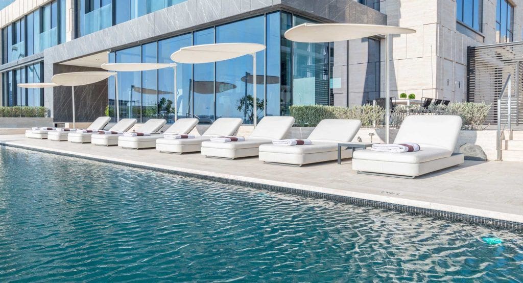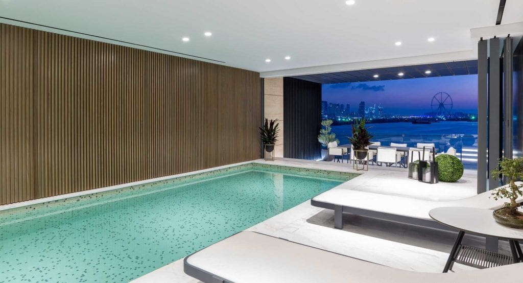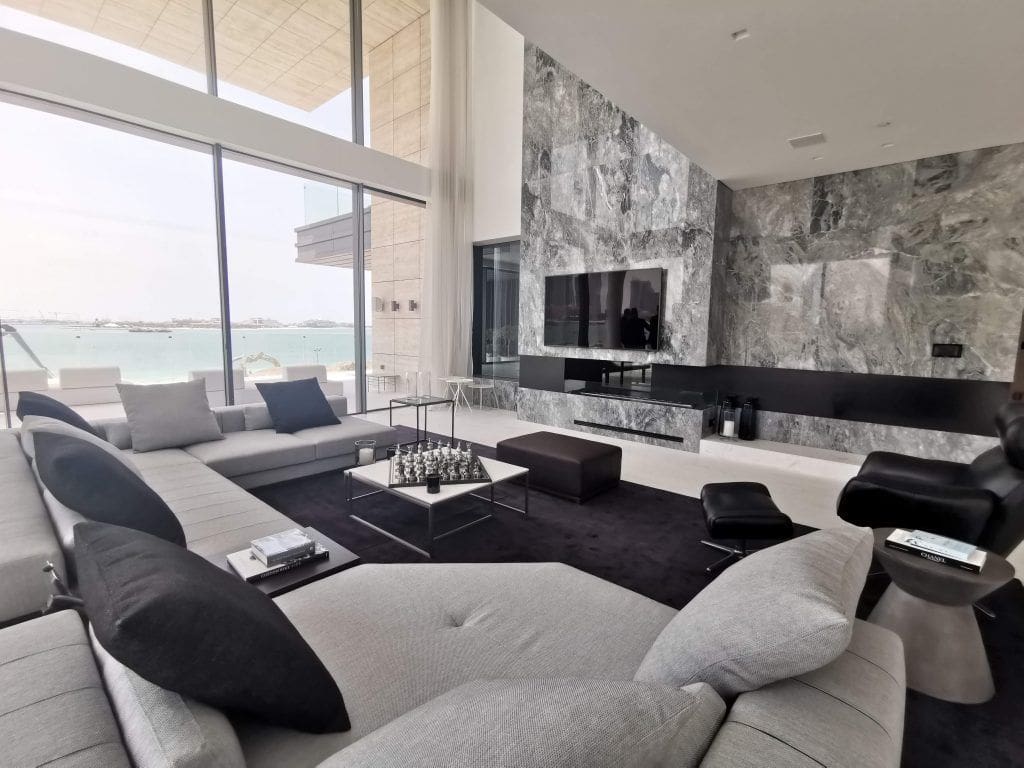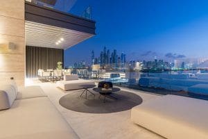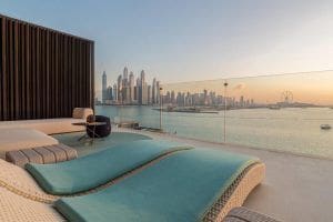 Palme Couture is a residential complex from the developer Innovate Living, located on one of the largest man-made islands of the planet Palm Jumeirah. The object is located on the coast of the Arabian Sea. Within it there are five-star hotels, including Atlantis and the Waldorf Astoria. According to recent statistics, this is one of the eight best areas in Dubai (ideal for investment and home buying). The building houses 14 residences including apartments each with from 1 to 4 bedrooms, townhouses, duplexes and a presidential penthouse. The latter consists of four bedrooms, a separate guest house and a rooftop pool.