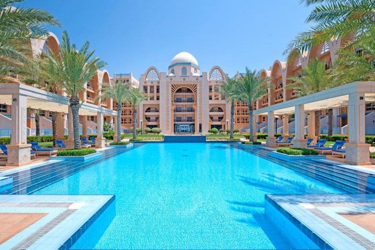 Sarai Apartments is a prestigious 7-story hotel located on The Palm Crescent, Palm Jumeirah artificial island in Dubai. The project, from the developer Al Osaimi Group, was completed in 2019.