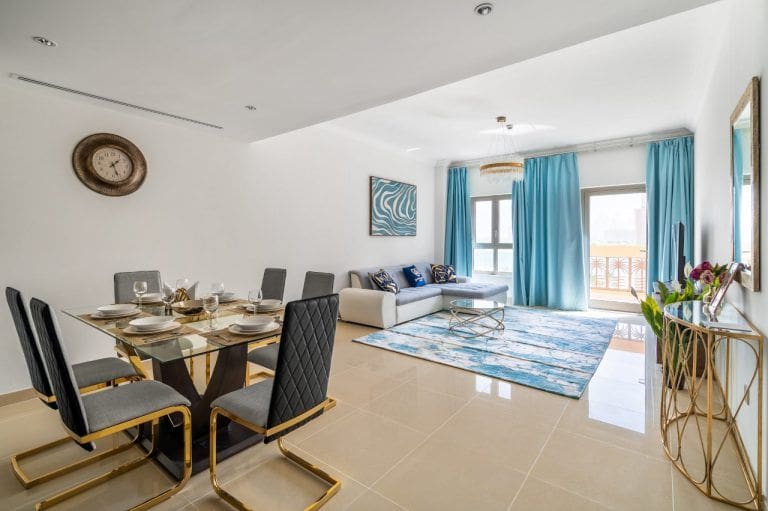 Palm Jumeirah attracts tourists due to its uniqueness and wide range of services. Sarai Apartments are suitable for long term rentals and retail space in which to set up a cafe, pharmacy or a retail outlet. The 1-bedroom apartments are available for rent at an average price of around AED 80,000 (USD 20,000), the 2-bedroom AED 100,000 (USD 26,000) and the 3-bedroom AED 160,000 (USD 41,000) per annum. Rents for commercial premises range from AED 84,000 (USD 21,000) to AED 244,000 (USD 62,000) per year.