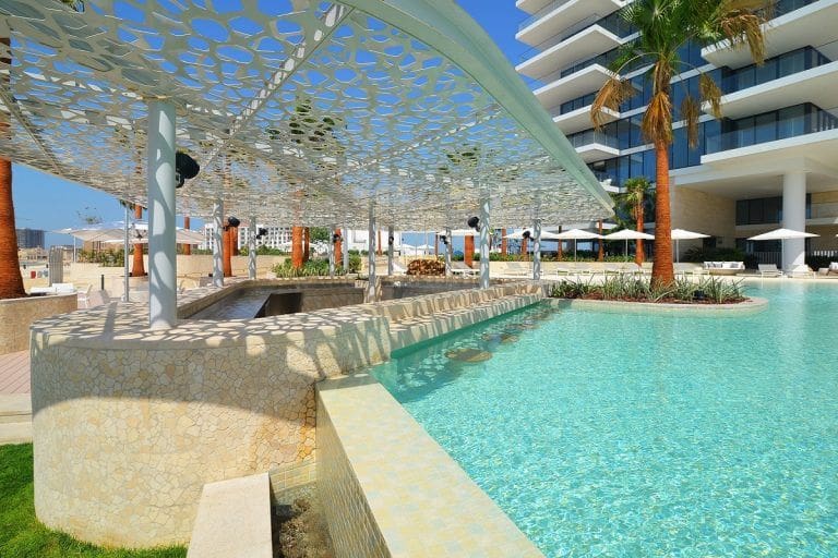 Serenia Residences features 250 units, including 1, 2 and 3 bedroom apartments and 3 and 4 bedroom penthouses. The residences available for sale have a minimum size of 96 square meters (1,033 square feet) and cost from AED 2,100,000 (USD 536,000).