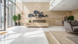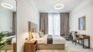 Soho Palm is a luxury apartment complex in Dubai, located on an artificial Palm Jumeirah island, made in the form of a palm tree. Large windows offer a panoramic view of the Arabian Gulf and the central part of the city. The complex was created by the experienced and qualified architects of NYC Holdings Limited. In Soho Palm there are about 62 residential units. There are 50 one- and two-bedroom apartments and 12 three-bedroom units. The finishes are designed in a European style. The layout provides fully equipped workrooms. Air conditioning, a refrigerator, a coffee machine and a microwave oven are all included.