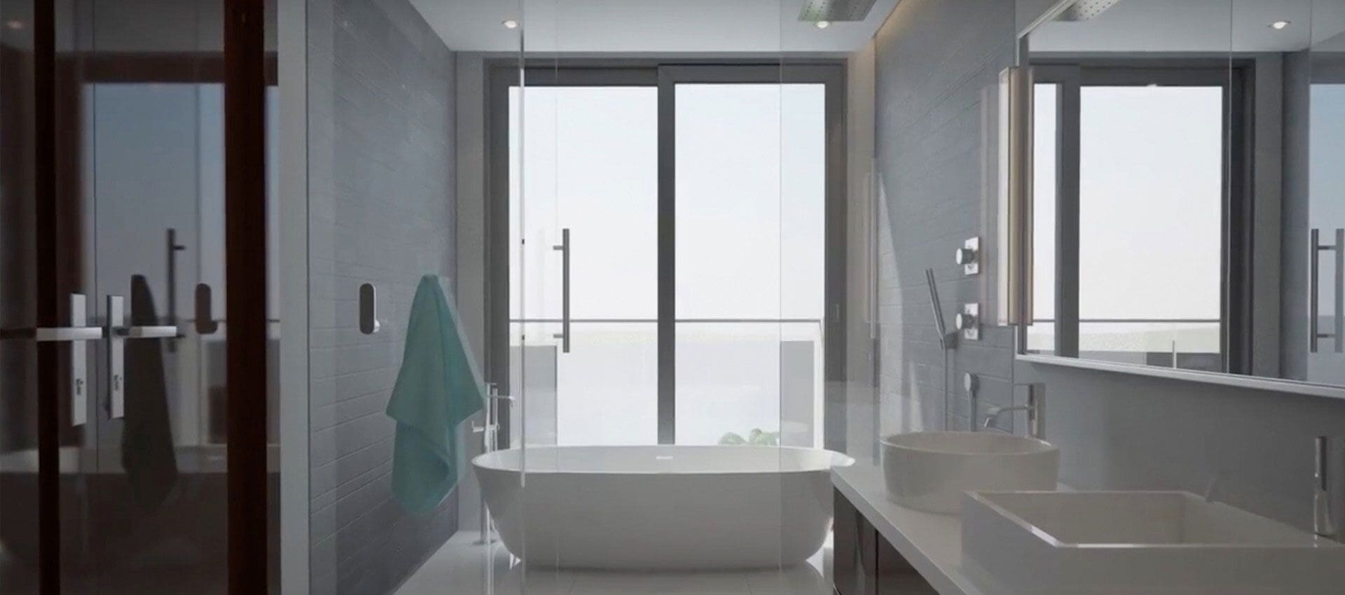 The interior of the living space is minimalist, spacious and functional. The predominant color is white and other pastel shades. All windows offer panoramic views.