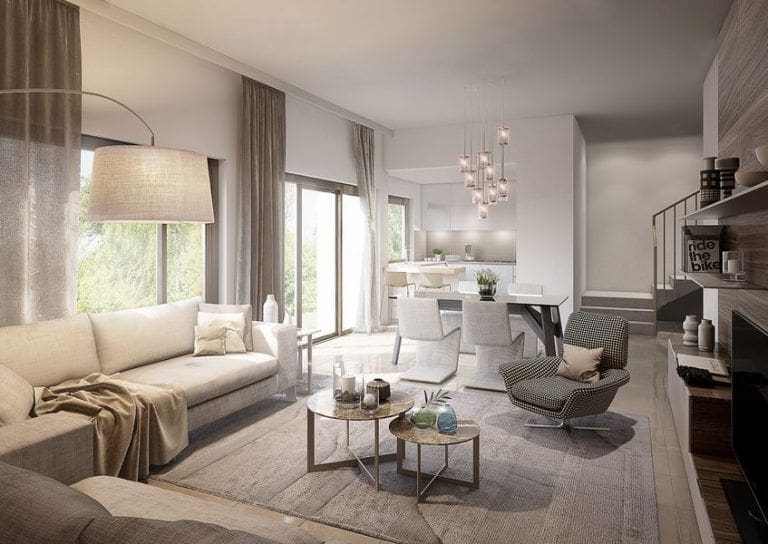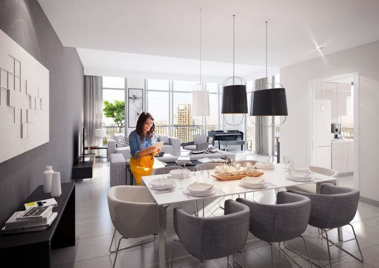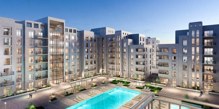 Apartments and townhouses in sub-communities, as Jenna Apartments, Warda Apartments, Zahra Breeze Apartments, Safi Apartments, Zahra Apartments and Hayat Townhouses are available for purchase already. An average area of 2-bedroom apartments reaches 1.324 sq. ft, 3-bedroom apartment is about 1895 sq. ft.