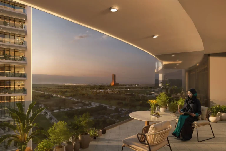 The design includes two towers facing each other, connected by a central plaza for interaction, peace, and shared experiences. Units capture sea views, landscaped surroundings, and optimize airflow and thermal comfort. Handover is planned for Q4 2029 with a structured payment plan.
