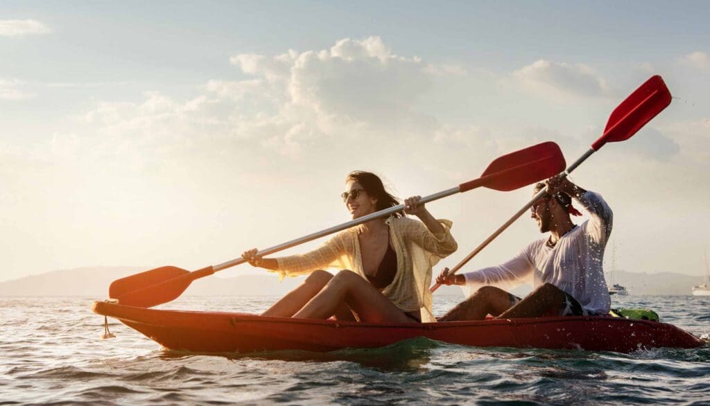 Residents enjoy direct access to a natural white-sand beach and a protected seawater lagoon designed for swimming and water activities. The coastal setting allows kayaking, paddle boarding, windsurfing and snorkeling, creating a lifestyle centered around open water, fresh sea air and outdoor recreation within the island environment.