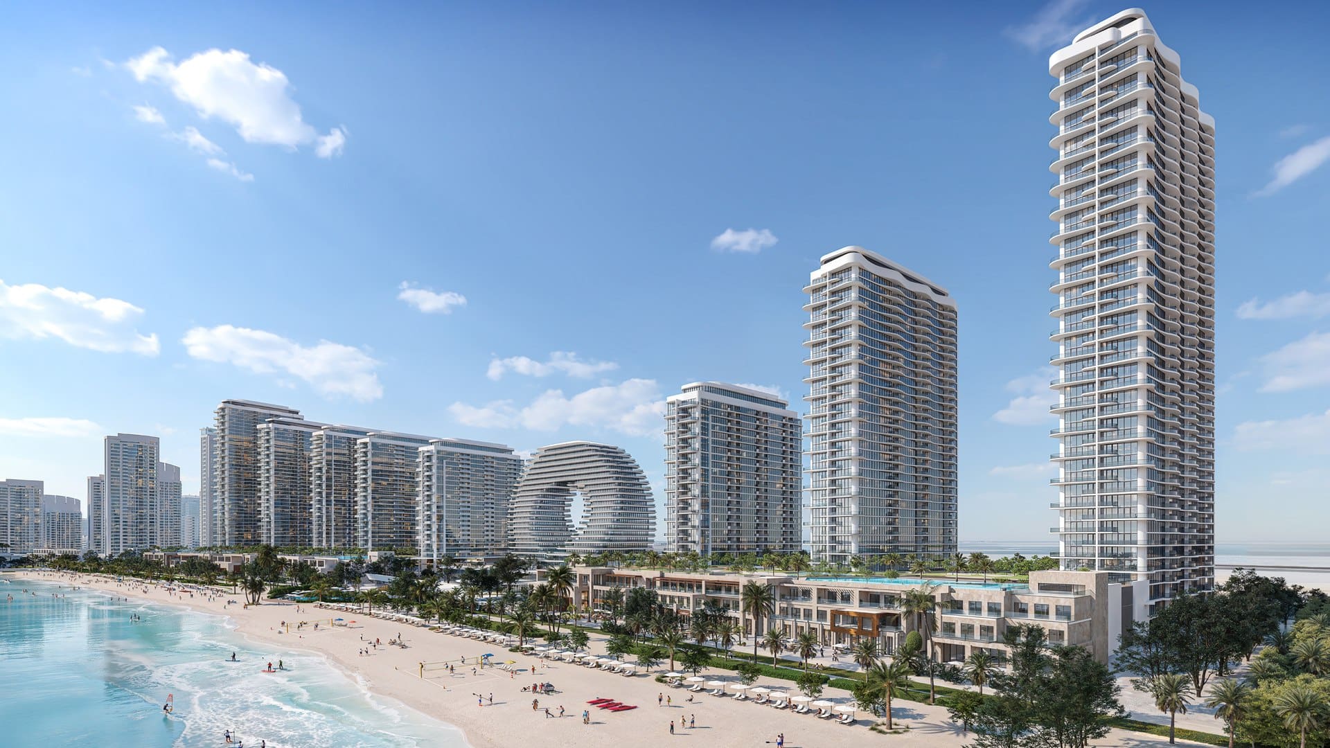 The master-planned island includes a marina and yacht club with boat mooring facilities and waterfront leisure areas. This maritime hub connects residents to sailing, boating and seaside dining while creating a social waterfront promenade with cafés, restaurants and spaces designed for relaxed coastal living.