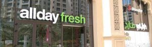 Рядом c Meera расположен супермаркет Allday Fresh. В нем можно купить все необходимые товары, свежие овощи и фрукты, готовую еду. В радиусе 5–10 минут езды находятся несколько других продуктовых магазинов: