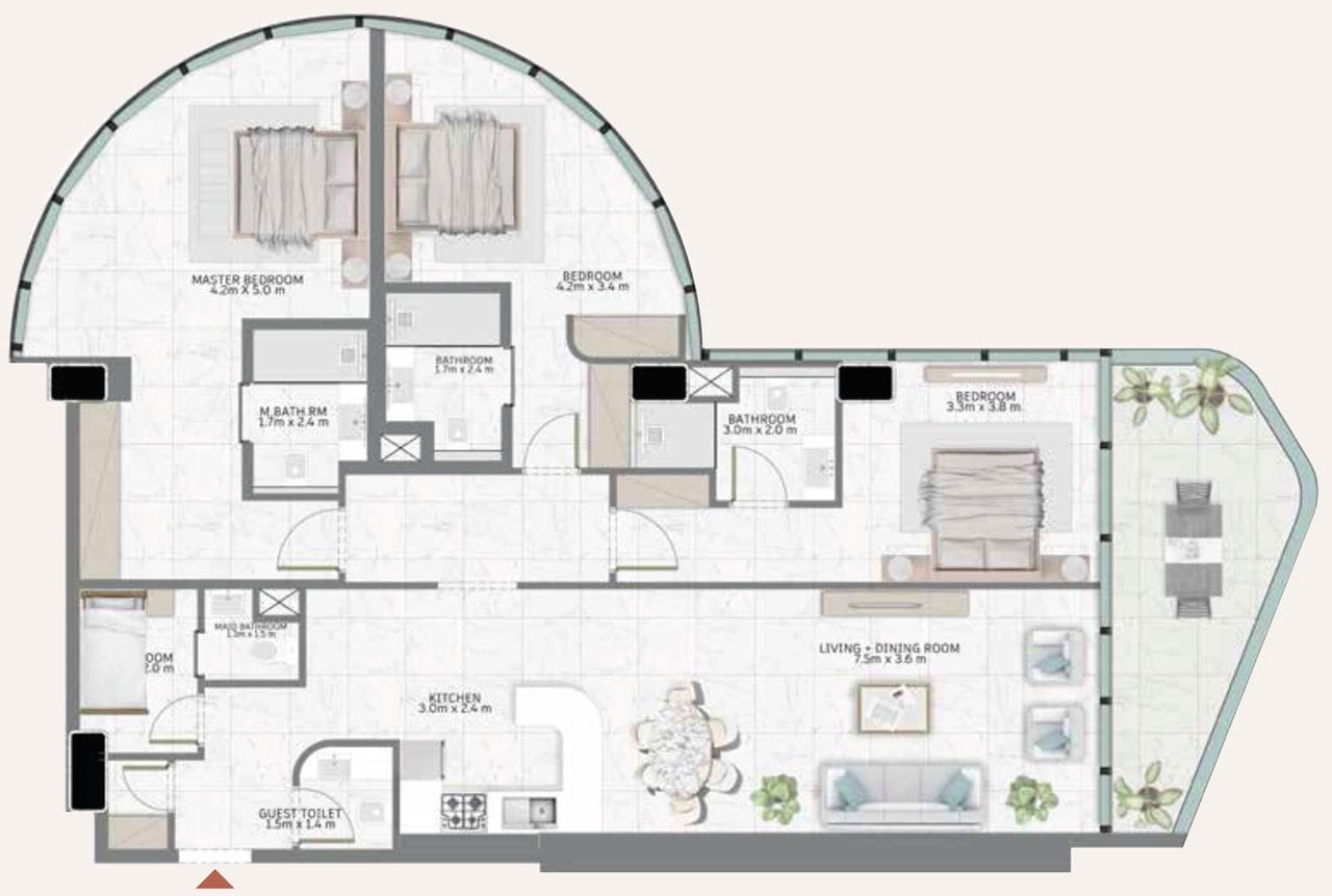 Сдача комплекса запланирована на третий квартал 2026 года. Поскольку стоимость недвижимости — от AED 2.4 млн (USD 653 тыс.), вы получите право на 10-летнюю «Золотую визу». Она распространяется на членов семьи и домашних работников, у которых есть лицензия.