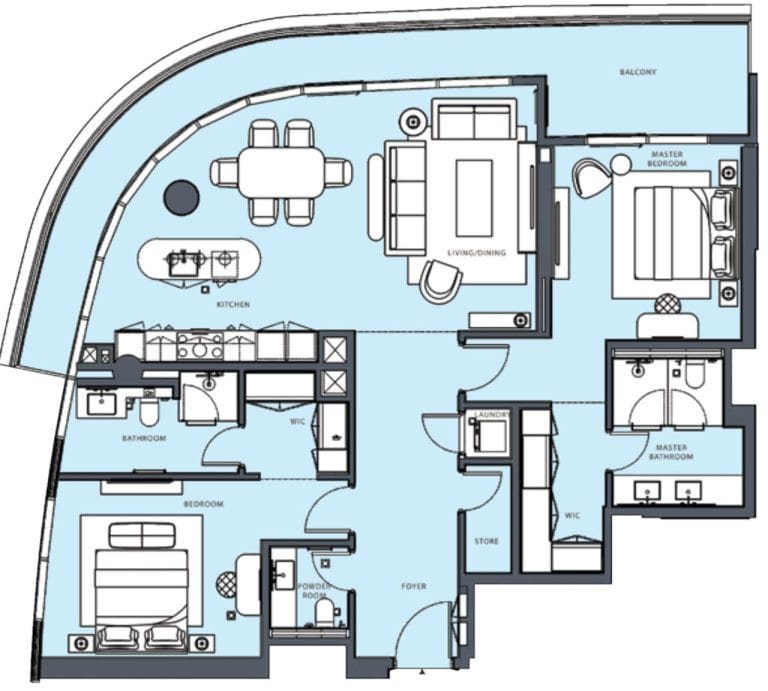 В комплексе представлены 143 резиденции — апартаменты с 1–3 спальнями и четыре эксклюзивных пентхауса с четырьмя спальнями. Площадь недвижимости — от 80 кв. м до 531 кв. м. Из каждой резиденции будет открываться завораживающий вид на море.
