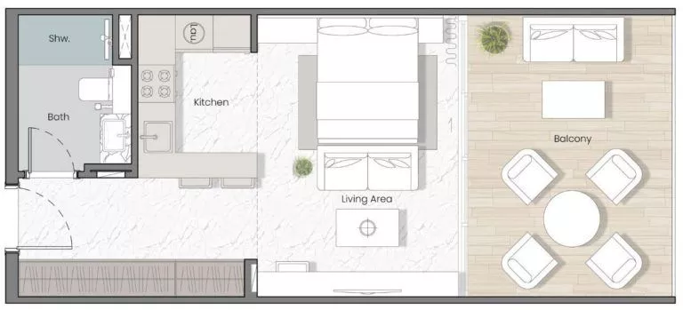 В 2027 году откроется первое в ОАЭ казино — до этой локации от комплекса Manta Bay всего 8 минут езды. Туда и обратно резидентов будут доставлять гольф-кары. Благодаря такому расположению стоимость недвижимости в проекте будет со временем расти.