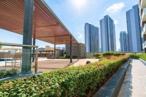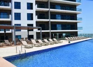 Azure — элитный 29-этажный жилой комплекс в сообществе Shams, на Al Reem Island в Абу-Даби. Застройщиком является Masaood Developments LLS. Строительство было завершено в 2019 году. В комплексе представлено 339 стильных апартаментов с 1-2 спальнями и один пентхаус. Площадь резиденций составляет от 71 кв. м до 129 кв. м. Во всех помещениях выполнена отделка в светлых тонах, имеется столовая, совмещенная с гостиной, отдельная кухня, спальни с примыкающими ванными и вместительными встроенными шкафами, гостевая ванная с тропическим душем, просторный балкон или терраса. В резиденциях предусмотрена система «Умный дом».