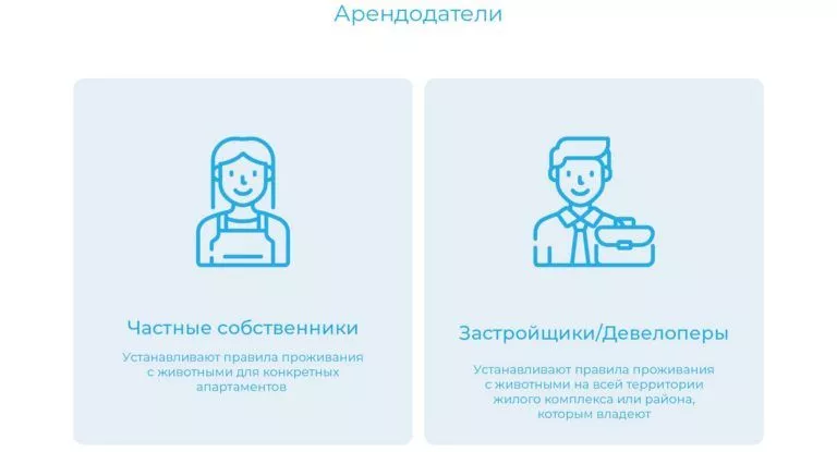 Если в районе нет единого собственника, то есть, у каждых апартаментов свой владелец плюс управляющая компания, которая обслуживает здания, то никаких общих правил в этом случае нет. Договариваться о проживании с питомцем нужно с собственником недвижимости в частном порядке.