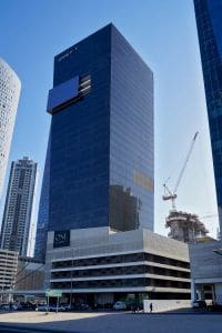 Бизнес центр One Business Bay Tower сдан в эксплуатацию в 2011 году. Проект реализовала компания Omniyat. Здание высотой 161 метр включает 35 этажей. Архитектурный стиль отличается нестандартными деталями.