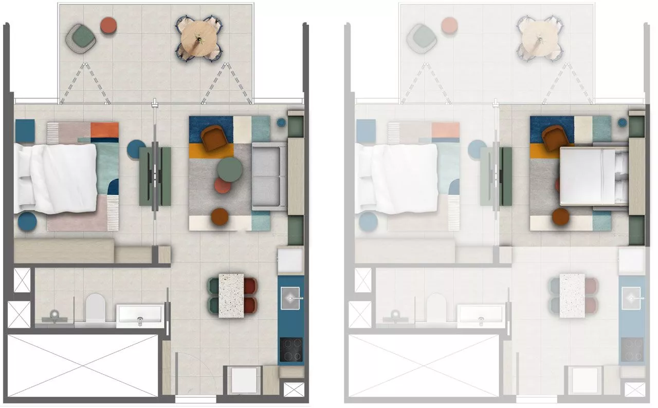 Одна из ключевых особенностей проекта — интеллектуальные решения, включая «карманные стены» и другие многофункциональные элементы под управлением роботов, позволяющие оптимизировать жилые пространства. Примечательно то, что в ОАЭ нет аналогов этим технологиям. Застройщик реализует инновационные разработки благодаря сотрудничеству с американской компанией ORI.