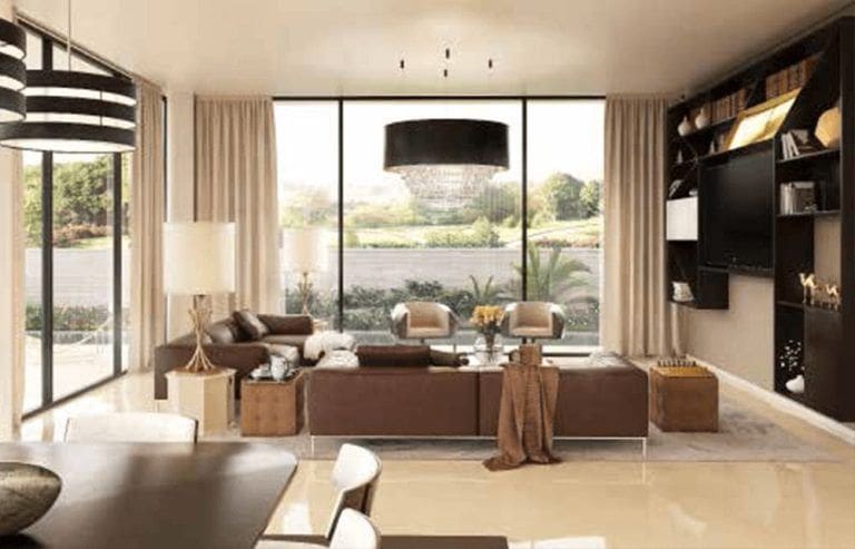 Для потенциальных покупателей представлены дома разных конфигураций и площадей. Интерьер выполнен в нейтральных тонах. В планировке предусмотрены главные и гостевые спальные комнаты, несколько санузлов, просторная гостиная, кухня и столовая, а также служебные помещения. Из панорамных окон открывается красивый вид на поля международного гольф-клуба Tiger Woods Dubai и ландшафтные парки.