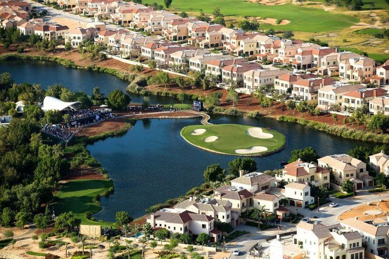 Плотность застройки в сообществе разная. Есть кластеры с рядами зданий вдоль улиц. Также здесь находятся отдельно стоящие на индивидуальных участках виллы. Особенностью сообщества является поле для гольфа.