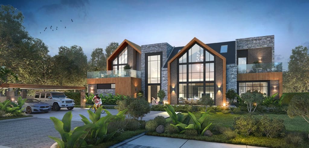 The Farmhouses — премиальный проект от DAMAC Properties в DAMAC Hills 2. В нем предлагаются фермерские дома с 5-6 спальнями площадью 468 кв. м или 779 кв. м. В резиденциях есть семейные зоны, кабинет, комнаты для прислуги и водителя. Недвижимость представлена в двух стилях: European и North American. В первом случае на дополнительных 604 кв. м можно оборудовать конюшню, двор для сельскохозяйственных животных, экзотический цветник, зону для разведения огня, место для отдыха или глэмпинг. В фермерских домах North American дополнительные 1,254 кв. м можно использовать еще и для обустройства VIP-кинотеатра и др.