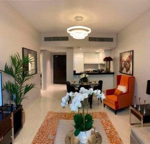 Kiara Furnished Apartments — жилой комплекс, состоящий из 3 башен, внутри которых расположены шикарные апартаменты от 1 до 3 спален. Из стеклянных панелей каждой башни открывается прекрасный вид на поле для гольфа. Архитектурный проект Kiara Furnished Apartments был разработан международной строительной компанией DAMAC Properties. Основная специализация DAMAC Properties — проектирование и практическая разработка элитной жилой недвижимости. Апартаменты полностью меблированы, а значит уже готовы к заселению. На кухне есть несколько шкафов и одна столешница.