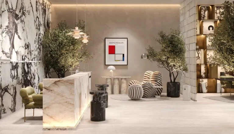 Каждая резиденция отличается элегантным интерьером с дизайнерскими элементами от мировых брендов. В отделке ванных комнатах — мрамор Calacatta Viola и Silver Travertino Romano, а полы можно выбрать с паркетом или травертином.