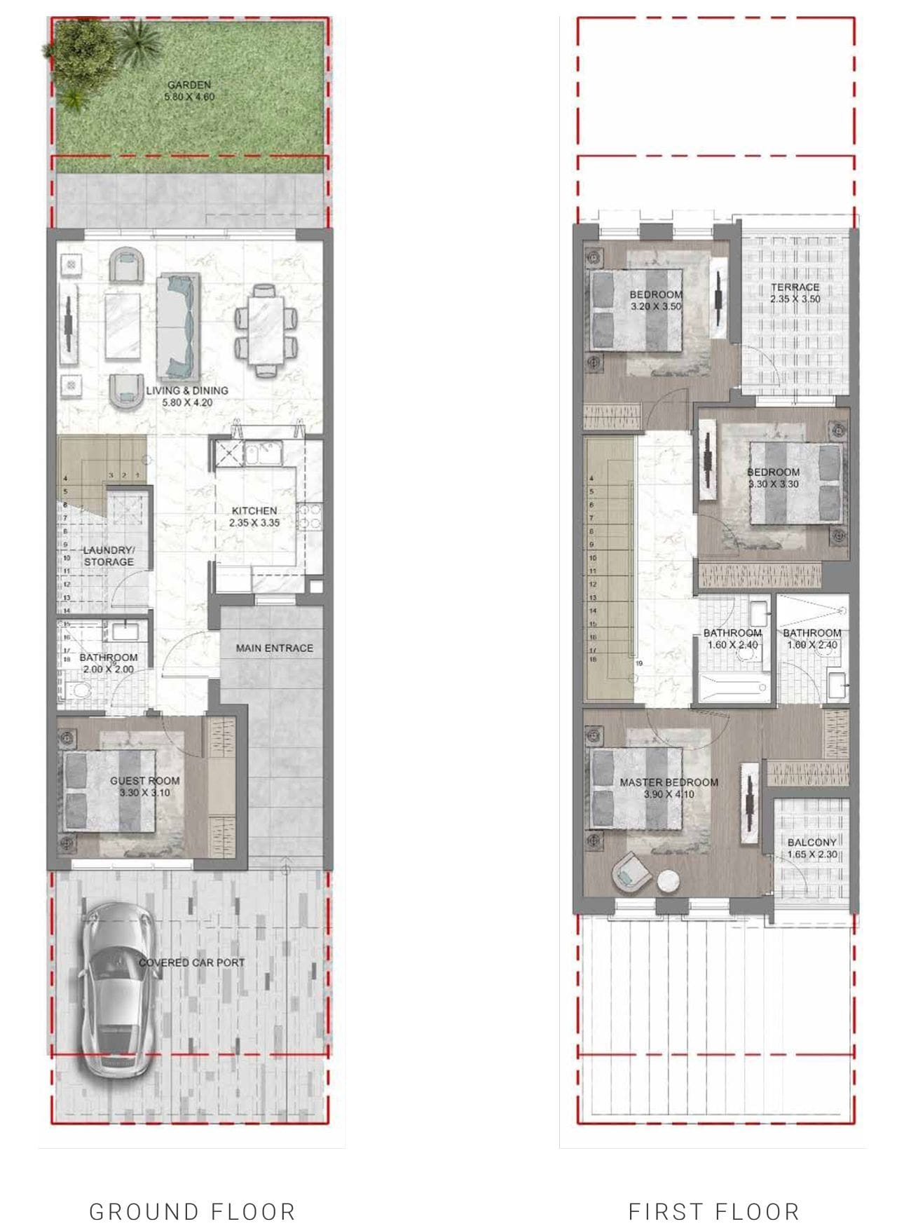 Mykonos — один из последних кластеров таунхаусов в сообществе DAMAC Lagoons от DAMAC Properties. Здесь представлены двухэтажные резиденции с четырьмя спальнями и трехэтажные дома с пятью спальнями.