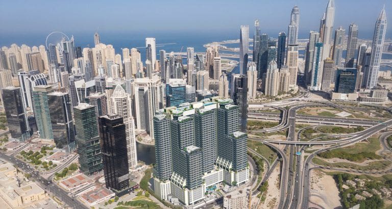Seven Palm Residences, район – Palm Jumeirah. Это роскошный проект из двух башен, соединенных между собой большим мостом. Застройщик предлагает студии, жилые дома со стильной отделкой и количеством спален от 1 до 3. Также для продажи доступны апартаменты с одной спальней, оборудованными кухнями и окнами максимального размера. Цены начинаются от AED 649,888 (USD 176,900).