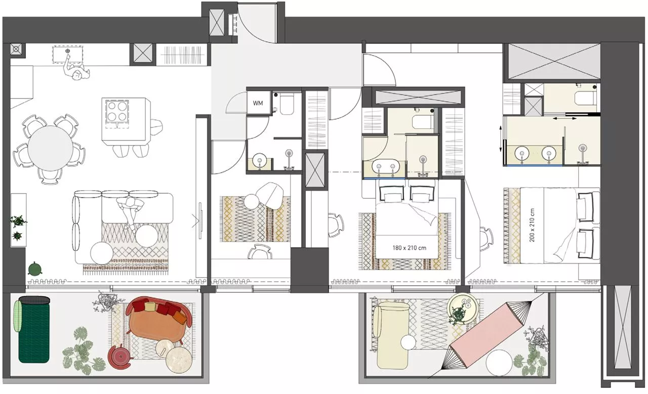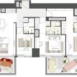 В комплексе представлено 338 резиденций — студии, апартаменты с 1–3 спальнями и двухуровневые пентхаусы. Жилая площадь недвижимости достигает 285 кв. м.