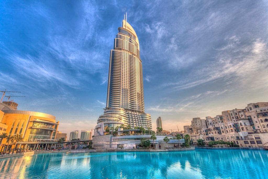 The Address Downtown Hotel стал дебютной работой компании Emaar Properties в области гостиничной сферы. До этого фирма занималась в основном коммерческой и жилой недвижимостью. Комплекс расположен в районе Downtown Dubai и представляет собой здание высотой около 306 м (1 005 футов), выполненное в стиле Ар-Деко. Элитный пятизвездочный гостиничный комплекс предоставляет своим гостям на выбор 196 гостиничных номеров и 626 апартаментов с обслуживанием. На территории есть оборудованный тренажерный зал, SPA, детский клуб и большая парковка.
