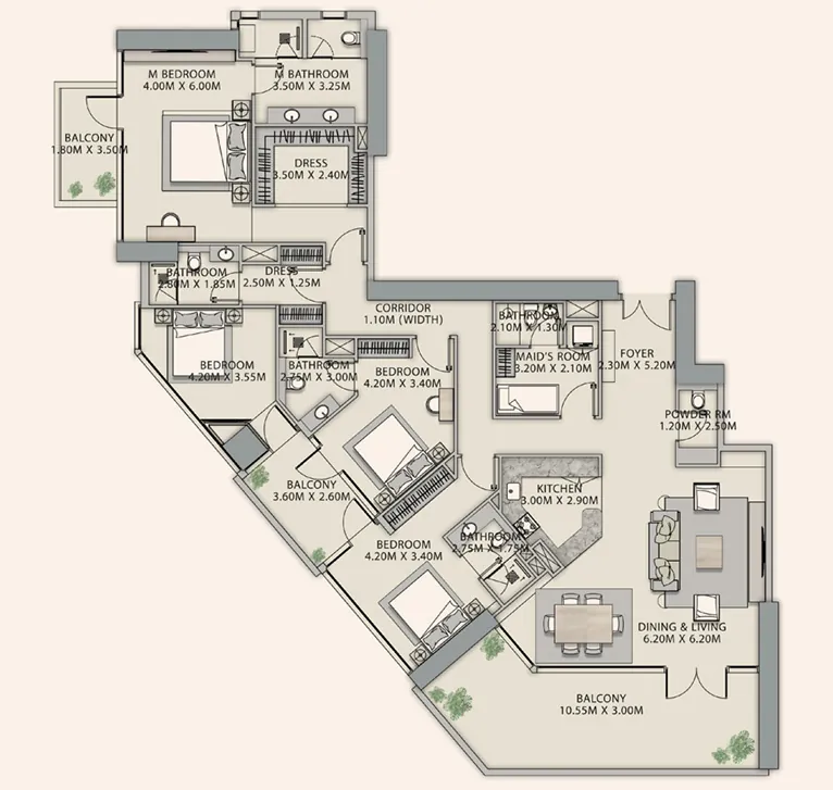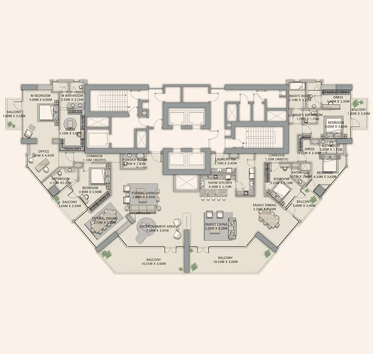 VELOR предлагает эксклюзивную коллекцию пентхаусов с 4 и 5 спальнями — просторных, изысканных и стильных резиденций с высочайшим уровнем комфорта.