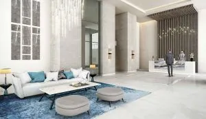 На выбор представлены апартаменты с количеством спален от 2 до 4 и площадью от 1217 до 5190 кв. фт (113—482 кв. м). Характерные особенности – широкие панорамные окна и вытянутые по периметру балконы.